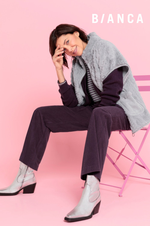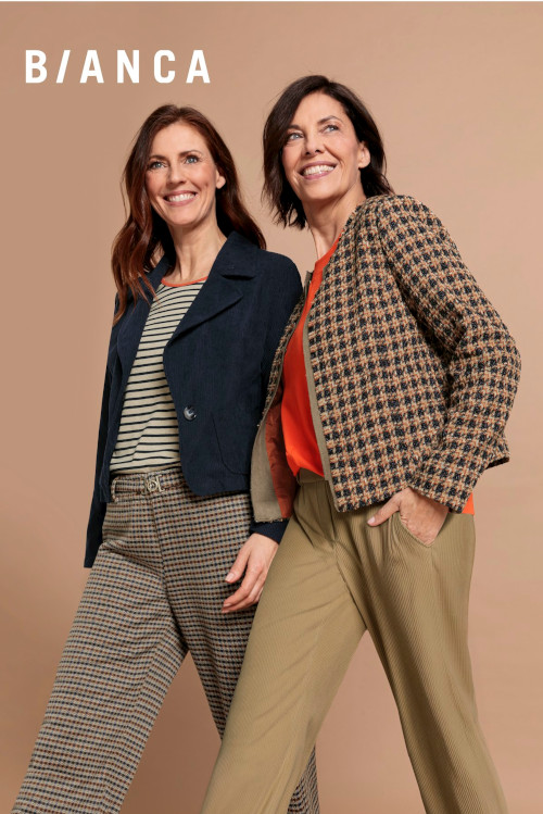 femininen Look. Konfektionsteile – wie Blazer, Hosenanzüge sind Kult. Hosen von weit